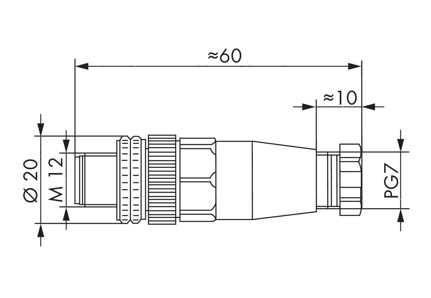 Connettore innestabile montato. 4 poli. Spina assiale M12, codifica A. Vite