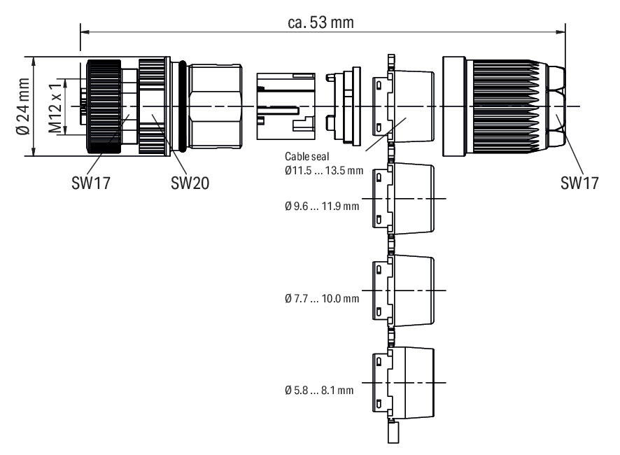 Connettore innestabile montato. 5 poli, schermato. Presa M12, assiale. Tecnologia IDC
