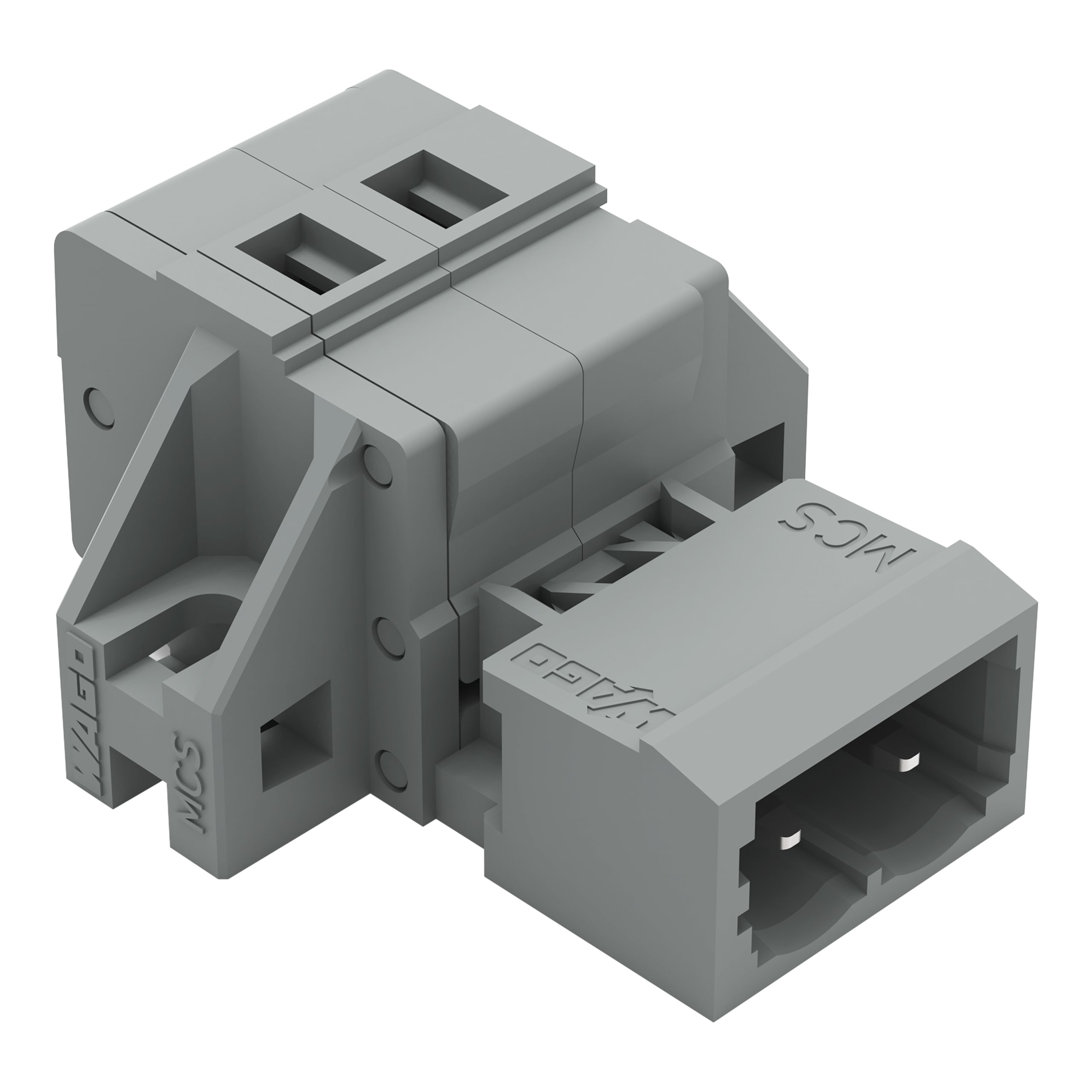 Connettore maschio per 1 conduttore. CAGE CLAMP®. 2,5 mm2. Passo pin 5 mm. 2 poli. collare di fissaggio. 2,50 mm2. grigio