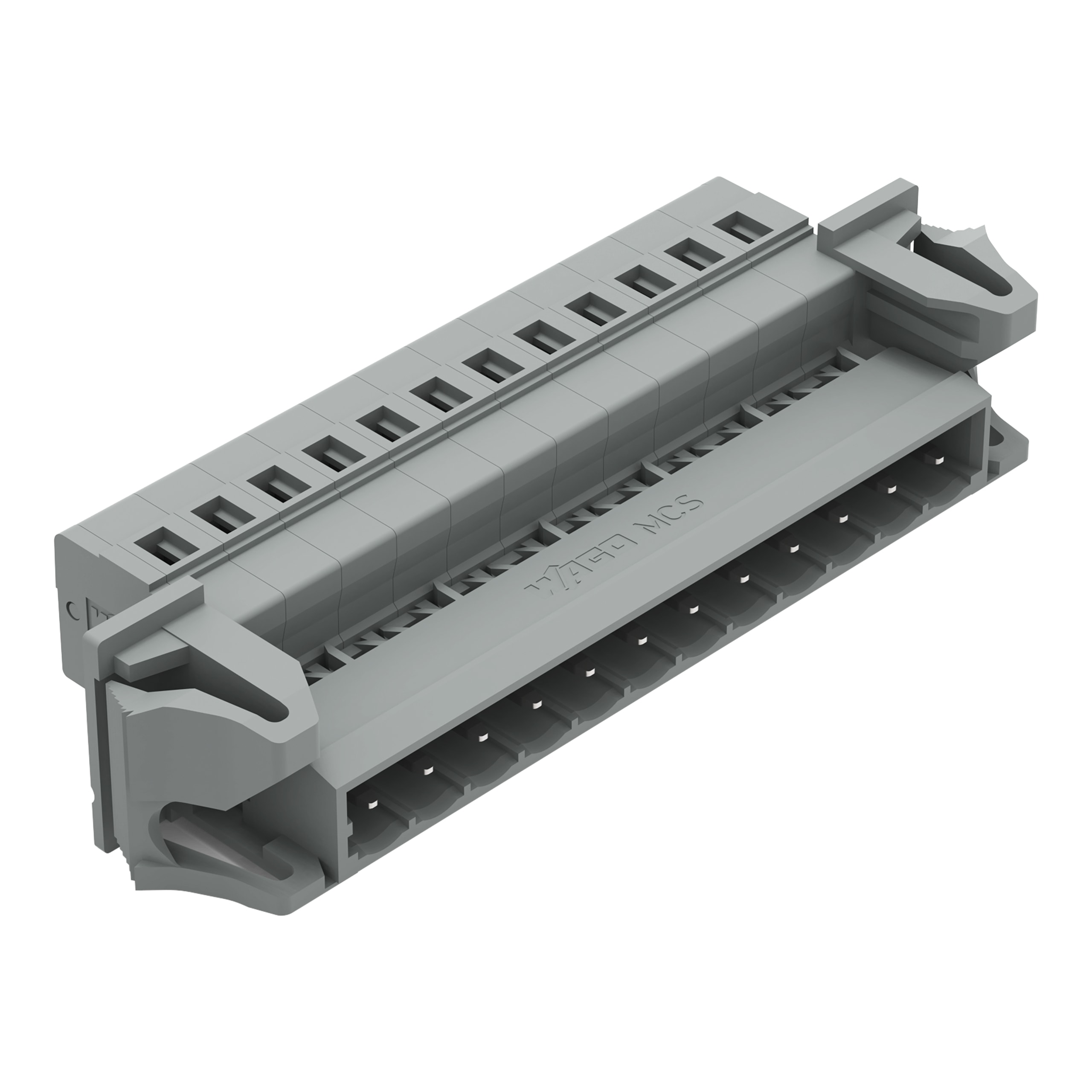 Connettore maschio per 1 conduttore. CAGE CLAMP®. 2,5 mm2. Passo pin 5 mm. 12 poli. Flangia a scatto. 2,50 mm2. grigio