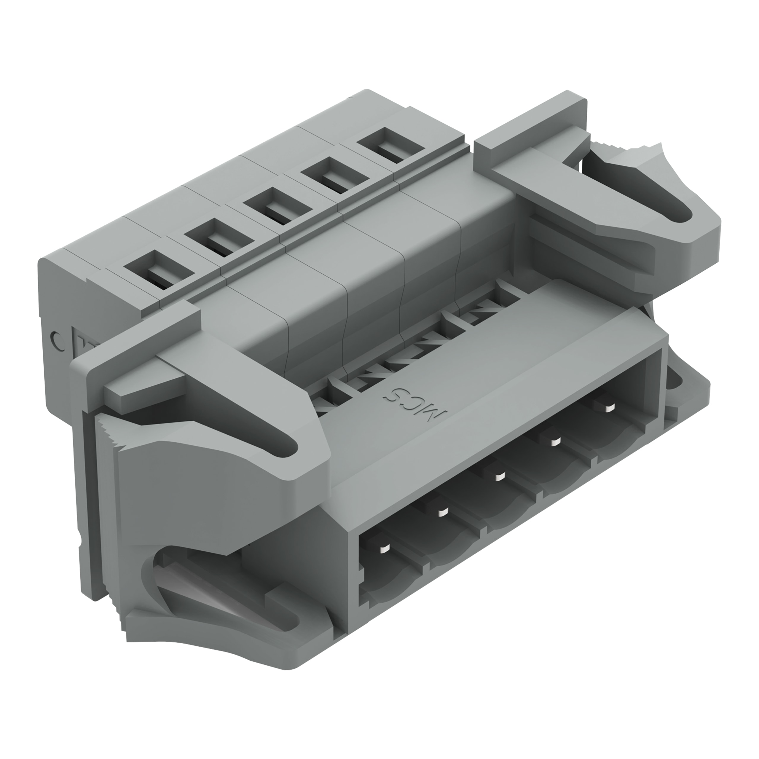 Connettore maschio per 1 conduttore. CAGE CLAMP®. 2,5 mm2. Passo pin 5 mm. 5 poli. Flangia a scatto. 2,50 mm2. grigio