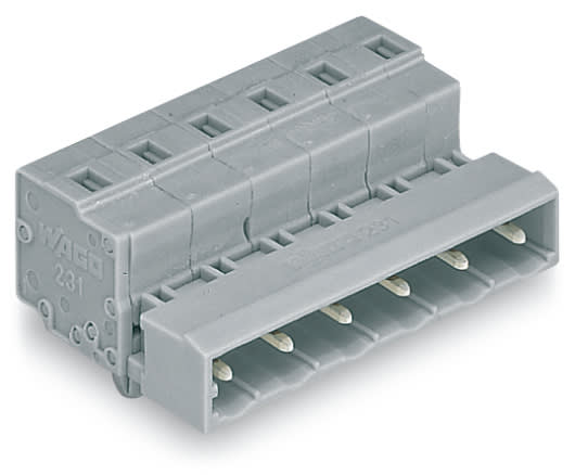 Connettore maschio per 1 conduttore. CAGE CLAMP®. 2,5 mm2. Passo pin 7,5 mm. 11 poli. Montaggio su guida DIN 35/pannello. Piedi di fissaggio a scatto. 2,50 mm2. grigio