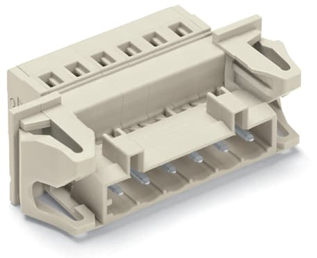 Connettore maschio per 1 conduttore. CAGE CLAMP®. 2,5 mm2. Passo pin 5 mm. 13 poli. Protetto al 100% contro l'inversione di polarità. Flangia a scatto. 2,50 mm2. grigio chiaro