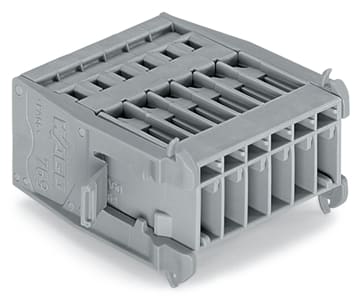 Connettore maschio per 1 conduttore. CAGE CLAMP®. 4 mm2. Passo pin 5 mm. 6 poli. Flangia a scatto. 4,00 mm2. grigio