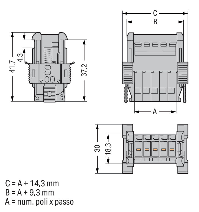 WAGO ELETTRONICA - Connettore maschio per 1 conduttore.CAGE CLAMP®.4 mm².grigio