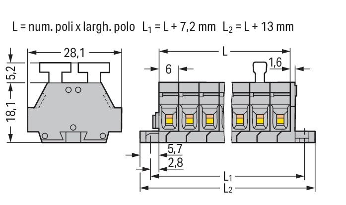 WAGO ELETTRONICA - Connettore maschio per 1 conduttore.CAGE CLAMP®.4 mm².grigio 769-602
