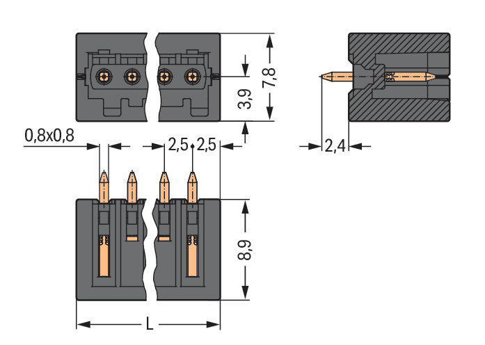 WAGO ELETTRONICA - Connettore maschio THR.Pin a saldare 0,8 x 0,8 mm.dritto.nero 733-342/105-604