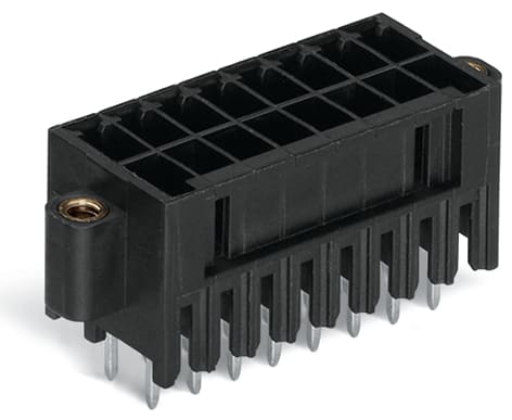 Connettore maschio THT, 2 file. Pin a saldare 0,8 x 0,8 mm. dritto. Protetto al 100% contro l'inversione di polarità. Flangia filettata. Passo pin 3,5 mm. 26 poli. nero