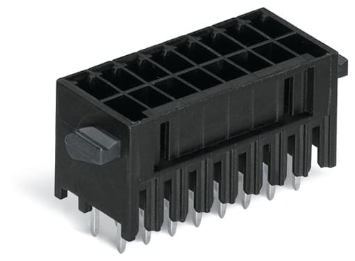 Connettore maschio THT, 2 file. Pin a saldare 0,8 x 0,8 mm. dritto. Protetto al 100% contro l'inversione di polarità. Leve. Passo pin 3,5 mm. 28 poli. nero