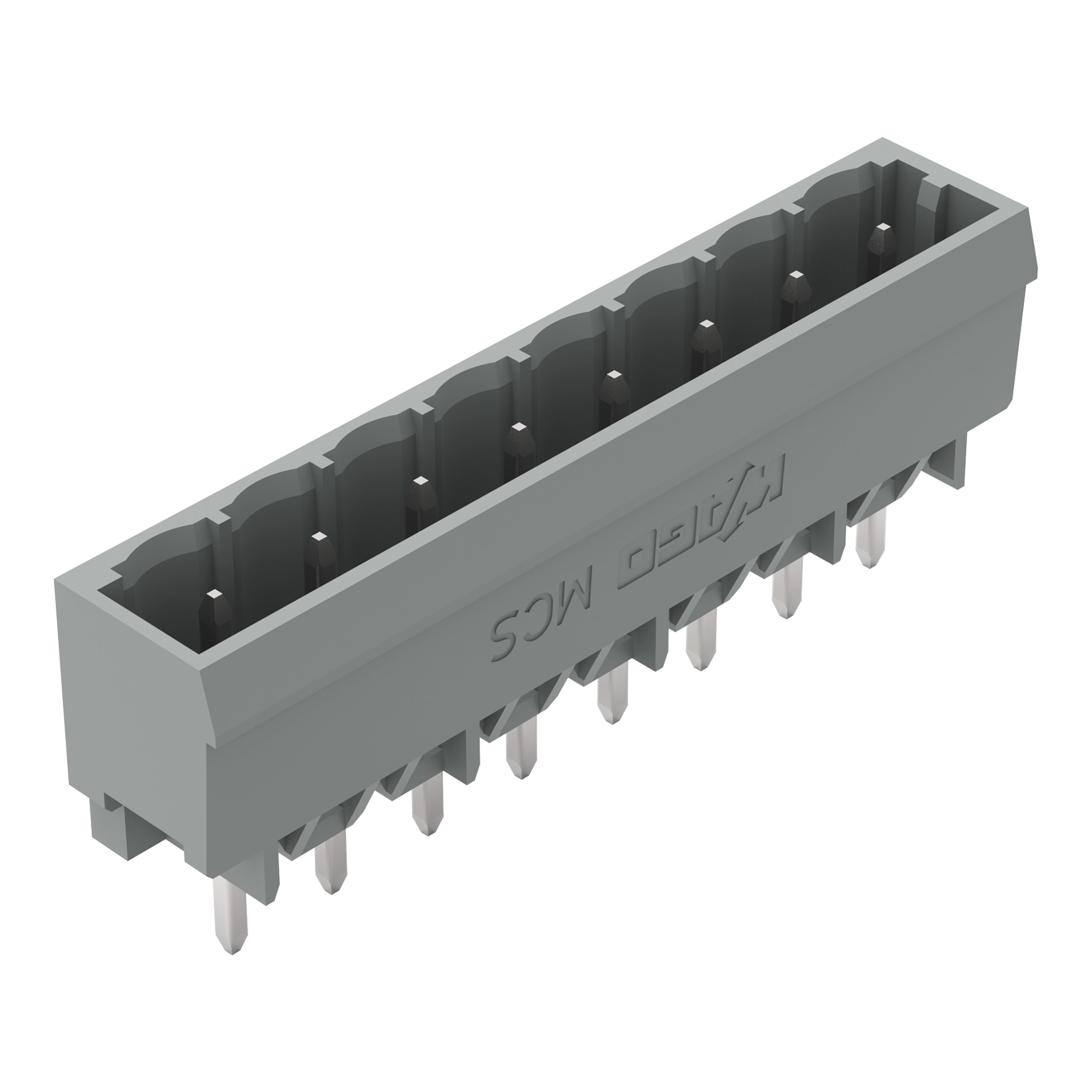 Connettore maschio THT. Pin a saldare 1,0 x 1,0 mm. dritto. Passo pin 5 mm. 8 poli. grigio