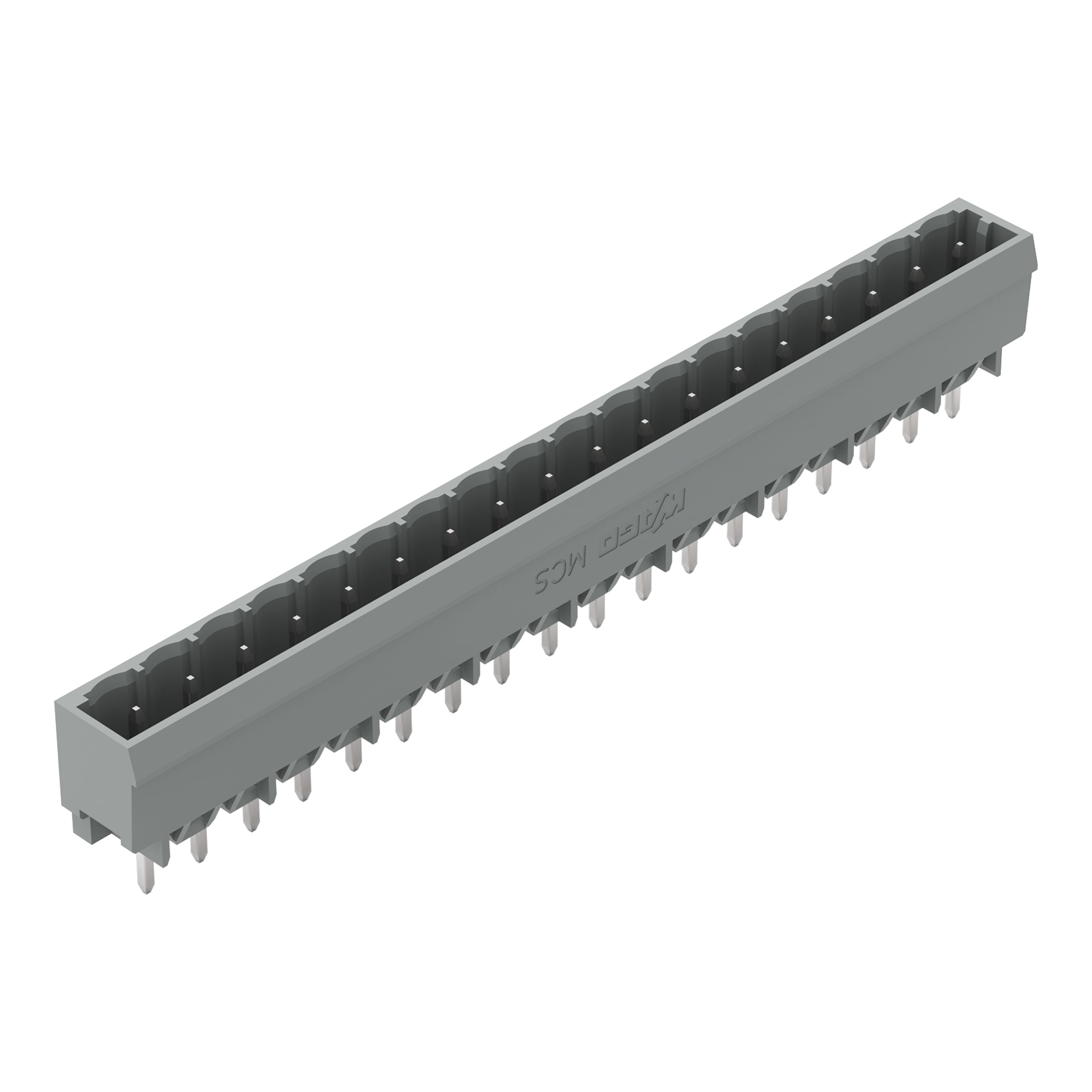 Connettore maschio THT. Pin a saldare 1,0 x 1,0 mm. dritto. Passo pin 5 mm. 18 poli. grigio