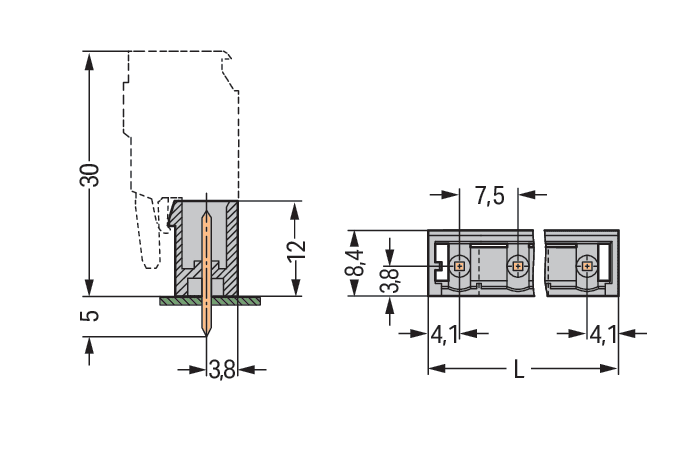 WAGO ELETTRONICA - Connettore maschio THT.Pin a saldare 1,0 x 1,0 mm.dritto.grigio 231-242/001-000