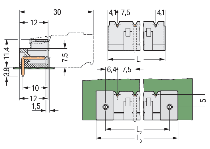 Connettore maschio THT. Pin a saldare 1,2 x 1,2 mm. angolato. Protetto al 100% contro l'inversione di polarità. Passo pin 7,5 mm. 4 poli. grigio chiaro