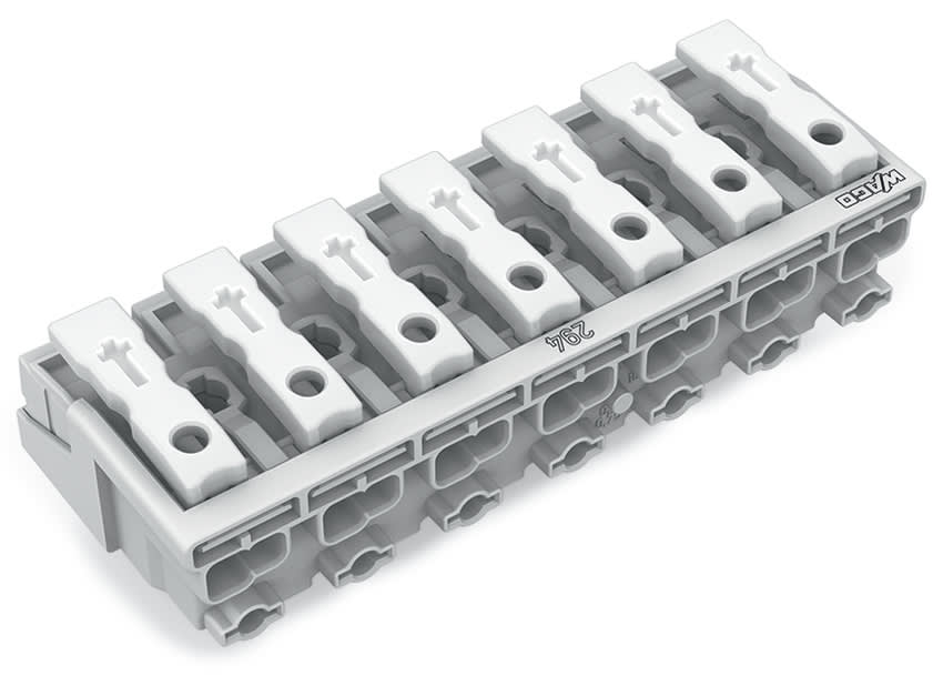 Connettore per illuminazione. pulsante, esterno. senza contatto di terra. 7 poli. Lato lampada: per conduttori rigidi. Lato installazione: per tutti i tipi di conduttore. max. 2,5 mm2. Temperatura ambiente: max. 85 °C (T85). 2,50 mm2. bianco