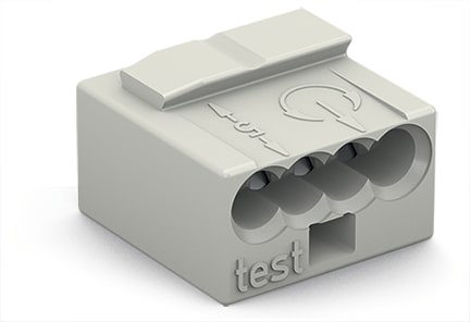MICRO PUSH WIRE® connector for junction boxes. for solid conductors. max. 0.8 mm Ø. 4-conductor. light gray housing. light gray cover. Surrounding air temperature: max 60°C. light gray