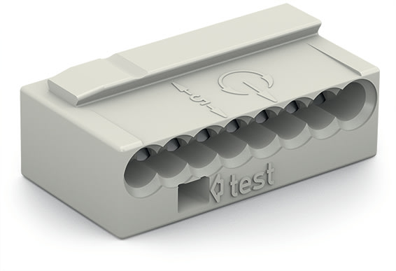 MICRO PUSH WIRE® connector for junction boxes. for solid conductors. max. 0.8 mm Ø. 8-conductor. light gray housing. light gray cover. Surrounding air temperature: max 60°C. light gray