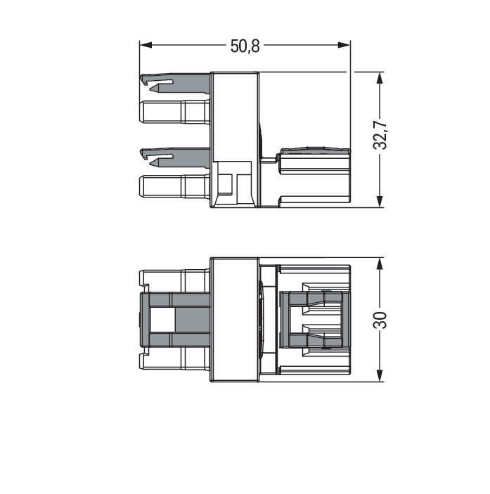 Distributore tipo h. 3 poli. Cod. B. 1 ingresso. 2 uscite. uscite su un lato. 3 leve di bloccaggio. per connessioni volanti. verde chiaro