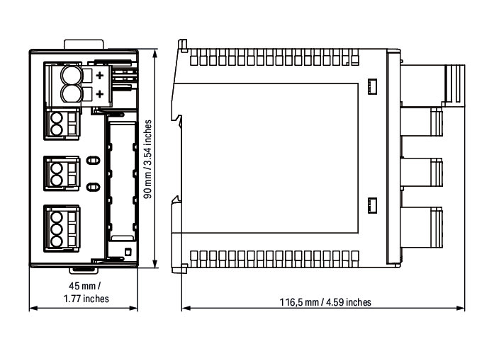 Interruttore di sicurezza elettronico. 2 canali. Tensione di ingresso 48 V DC. regolabile da 2 a 10 A. Contatto segnale