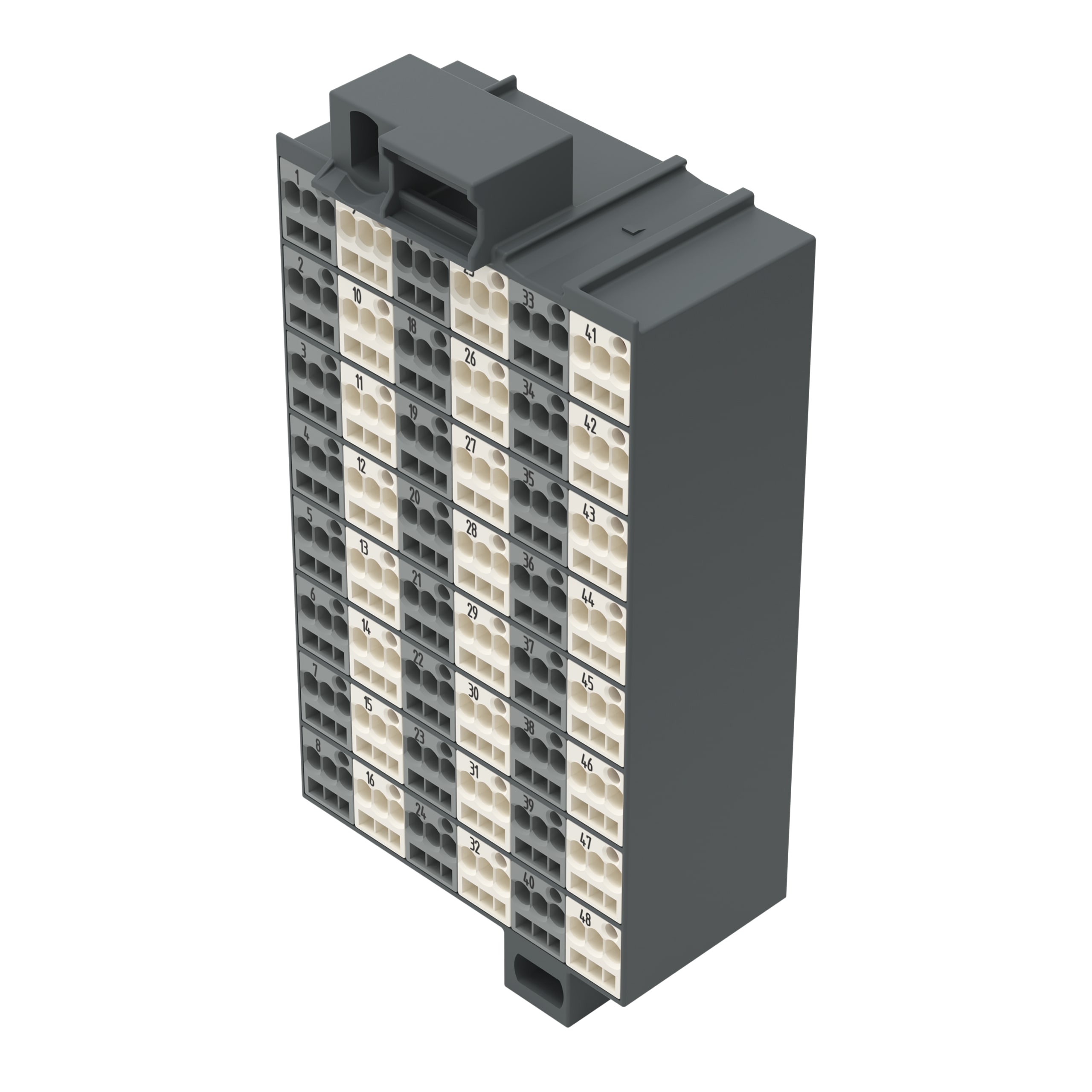 Matrice di ripartizione. 48 poli. Marcatura 1-48. Colori dei moduli: grigio/bianco. Marcatura modulo, lato 1 e 2 verticale. 1,50 mm2. grigio scuro