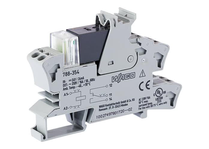 WAGO ELETTRONICA - Modulo relè.Tensione nominale di ingresso: 24 V DC.1 contatto in scambio.grigio 788-354