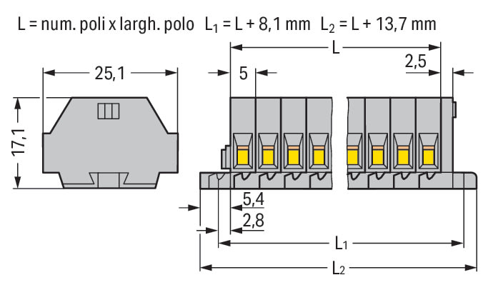 WAGO ELETTRONICA - Morsettiera per 2 conduttori.senza pulsanti.con flange di fissaggio.grigio 260-108