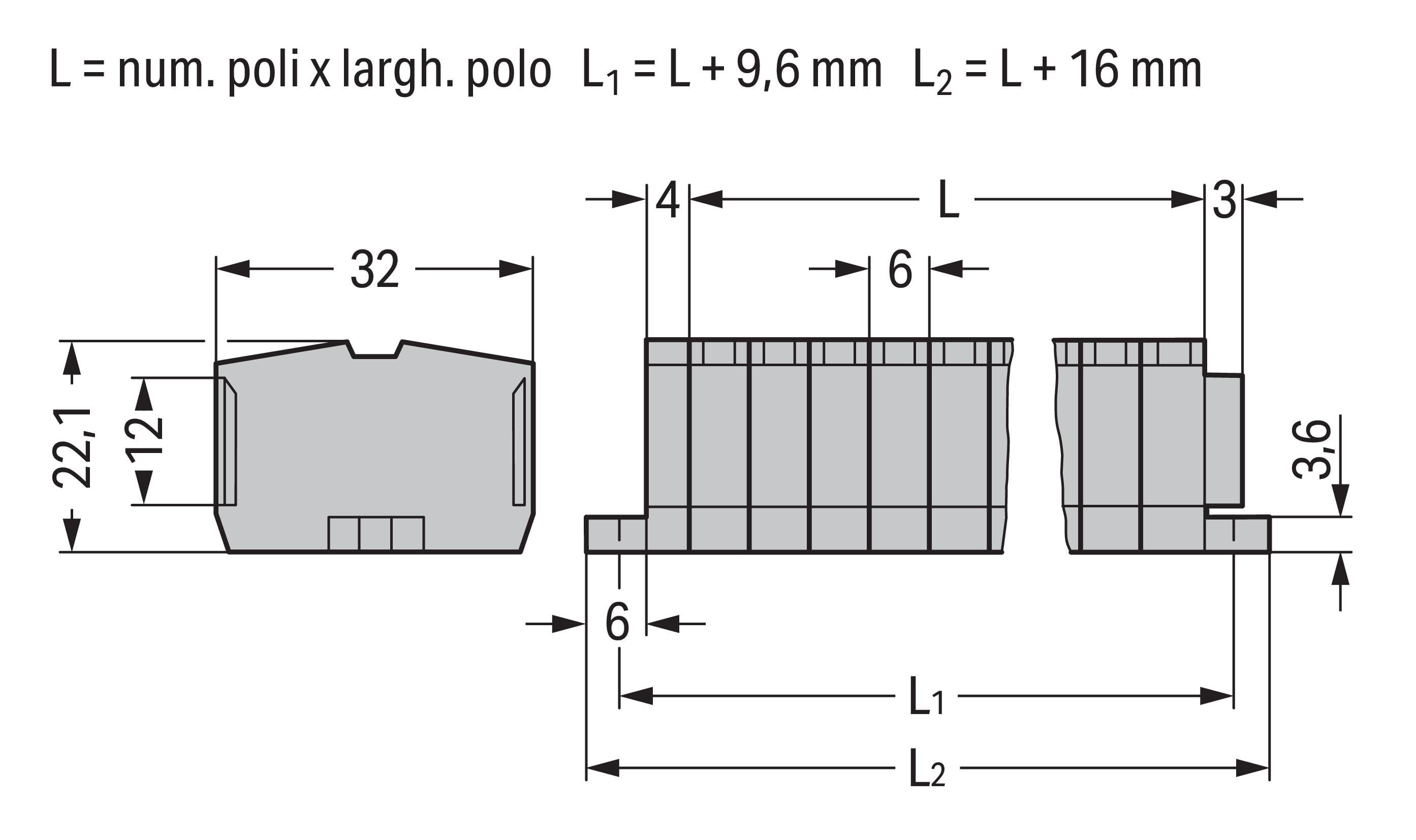 Morsettiera per 2 conduttori. senza pulsanti. con flange di fissaggio. 7 poli. per versioni di montaggio a vite o similari. Foro di fissaggio Ø 3,2 mm. 2,5 mm2. CAGE CLAMP®. 2,50 mm2. grigio