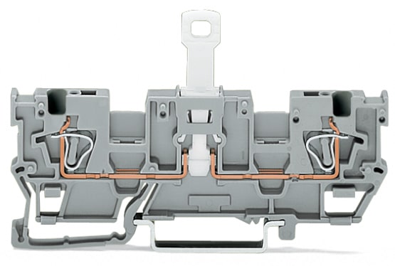 Morsetto di base sezionatore per 1 conduttore/1 pin. con 2 posizioni per ponticelli. per guida DIN 35 x 15 e 35 x 7,5. 4 mm2. CAGE CLAMP®. 4,00 mm2. grigio