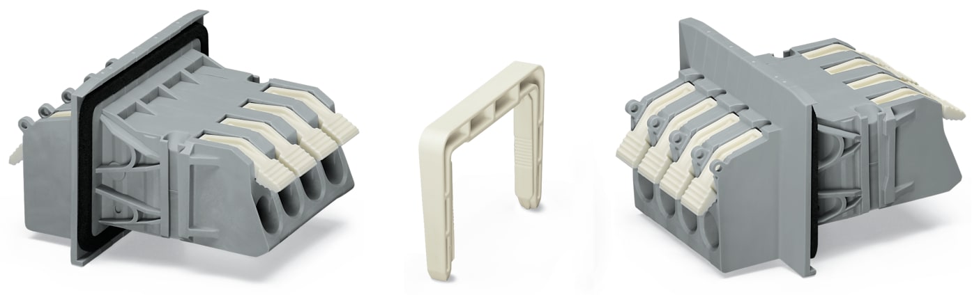 Morsetto passaparete. leva. Spessore piastra: 3 mm. 16 mm2. Passo pin 11,5 mm. 4 poli. CAGE CLAMP®. 16,00 mm2. grigio