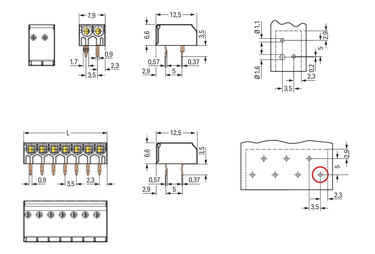 Morsetto per circuito stampato. 1,5 mm2. Passo pin 3,5 mm. 8 poli. PUSH WIRE®. 1,50 mm2. bianco