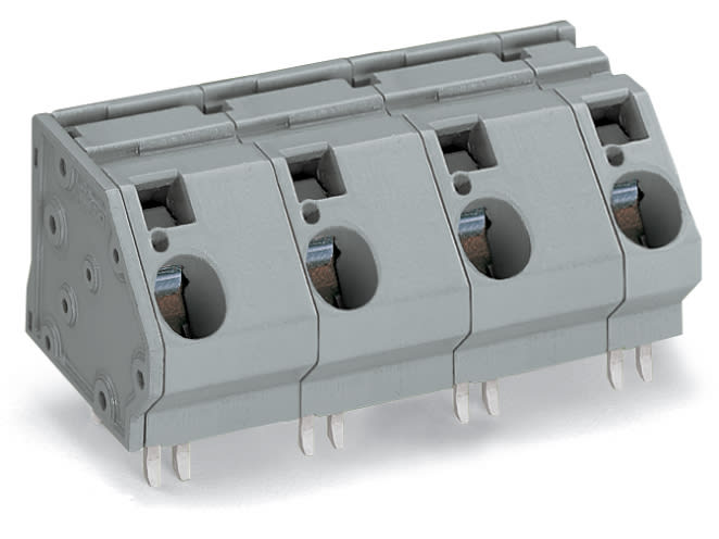 Morsetto per circuito stampato. 16 mm2. Passo pin 20 mm. 4 poli. CAGE CLAMP®. collegamento a ponte opzionale. 16,00 mm2. grigio