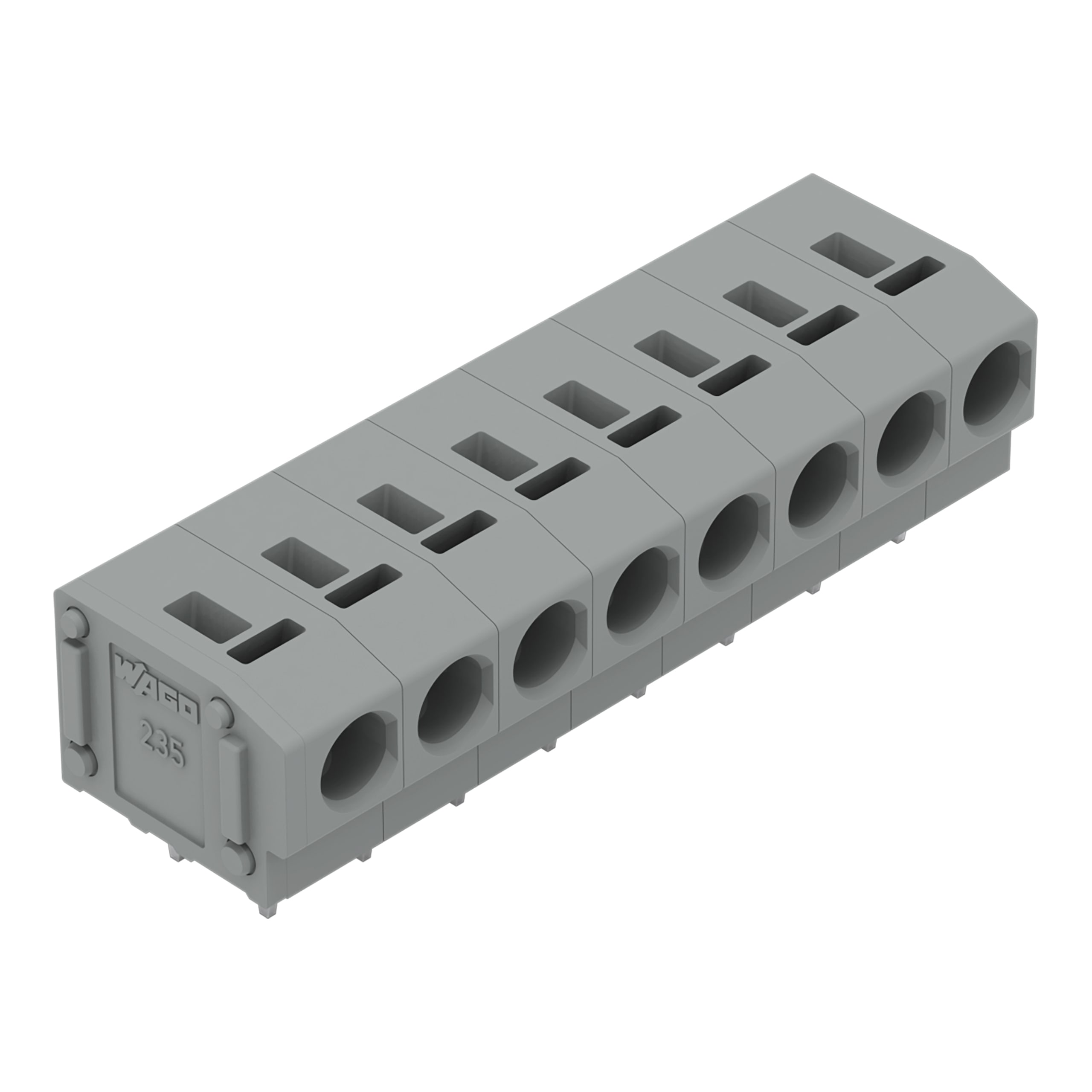 Morsetto per circuito stampato. 2,5 mm2. Passo pin 5/5,08 mm. 8 poli. PUSH WIRE®. con presa per test. 2,50 mm2. grigio
