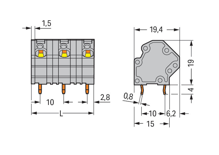 WAGO ELETTRONICA - Morsetto per circuito stampato.4 mm².Passo pin 10 mm.grigio 745-3208