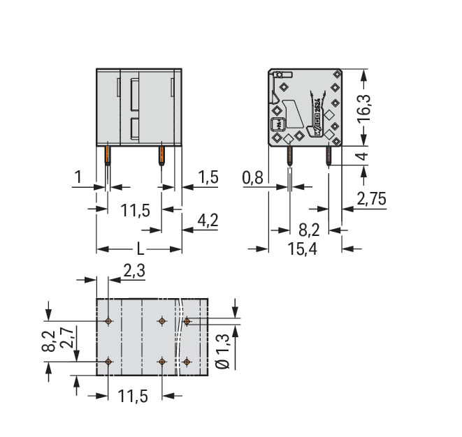 WAGO ELETTRONICA - Morsetto per circuito stampato.4 mm².Passo pin 11,5 mm.grigio 2624-3507