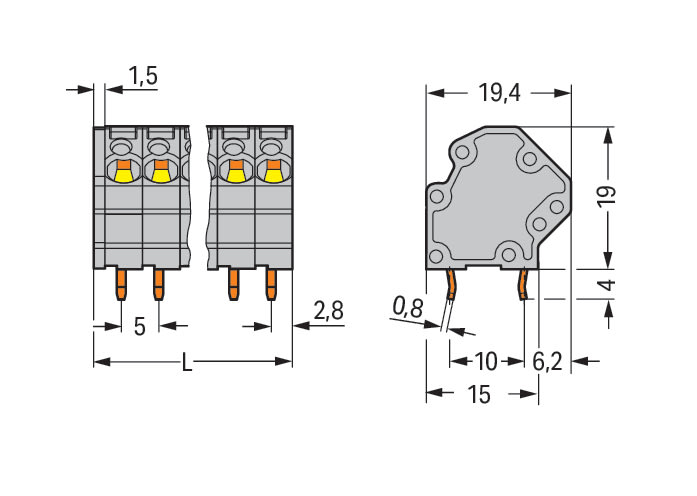 WAGO ELETTRONICA - Morsetto per circuito stampato.4 mm².Passo pin 5 mm.grigio