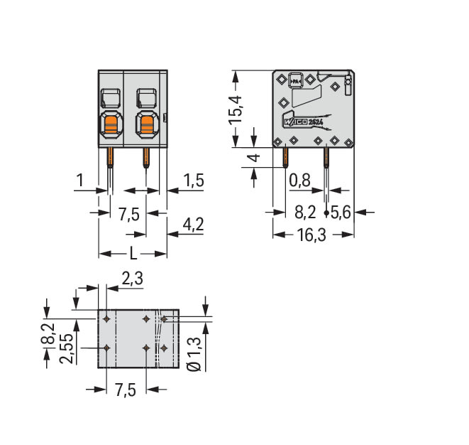 WAGO ELETTRONICA - Morsetto per circuito stampato.4 mm².Passo pin 7,5 mm.grigio