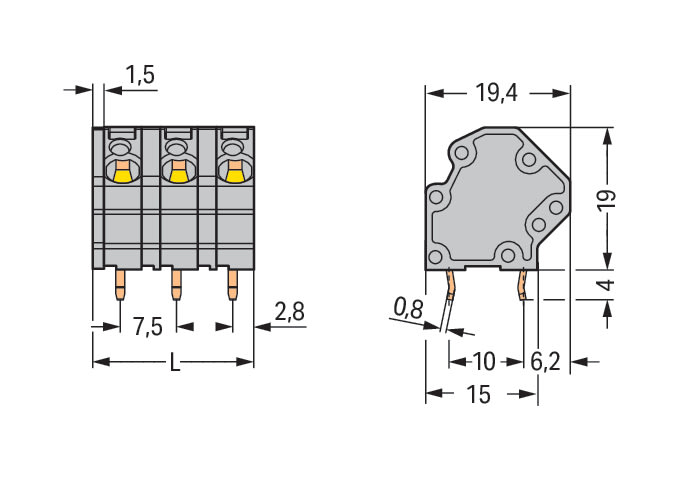 WAGO ELETTRONICA - Morsetto per circuito stampato.4 mm².Passo pin 7,5 mm.grigio 745-3159