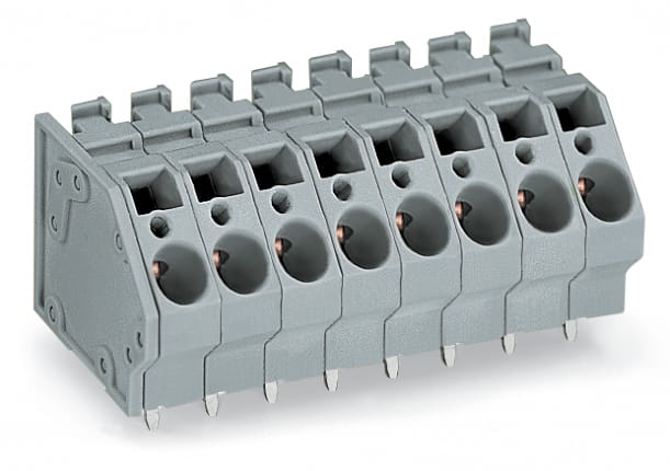 Morsetto per circuito stampato. 6 mm2. Passo pin 7,5 mm. 8 poli. CAGE CLAMP®. collegamento a ponte opzionale. 6,00 mm2. grigio