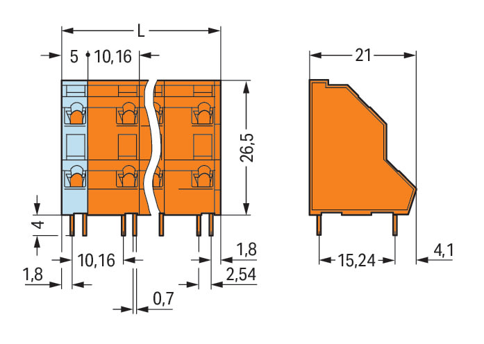 WAGO ELETTRONICA - Morsetto per circuito stampato a due piani.2,5 mm².Passo pin 10,16 mm.arancione 736-854