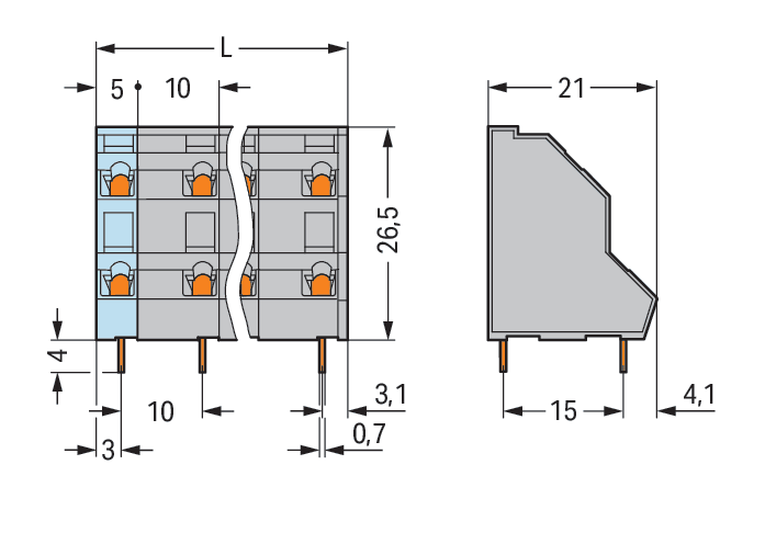 WAGO ELETTRONICA - Morsetto per circuito stampato a due piani.2,5 mm².Passo pin 10 mm.grigio 736-712