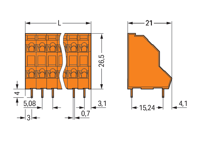 WAGO ELETTRONICA - Morsetto per circuito stampato a due piani.2,5 mm².Passo pin 5,08 mm.arancione 736-316