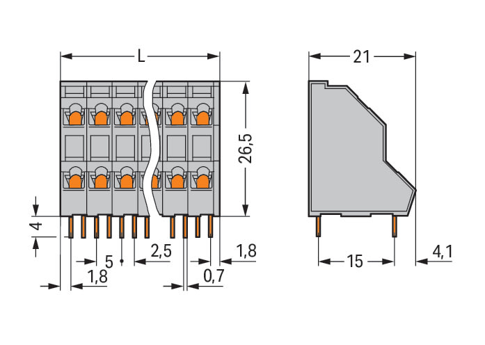 WAGO ELETTRONICA - Morsetto per circuito stampato a due piani.2,5 mm².Passo pin 5 mm.grigio