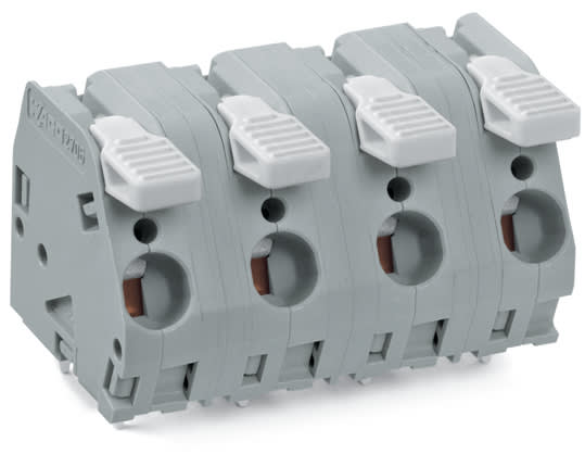 Morsetto per circuito stampato. leva. 6 mm2. Passo pin 12,5 mm. 4 poli. CAGE CLAMP®. 6,00 mm2. grigio