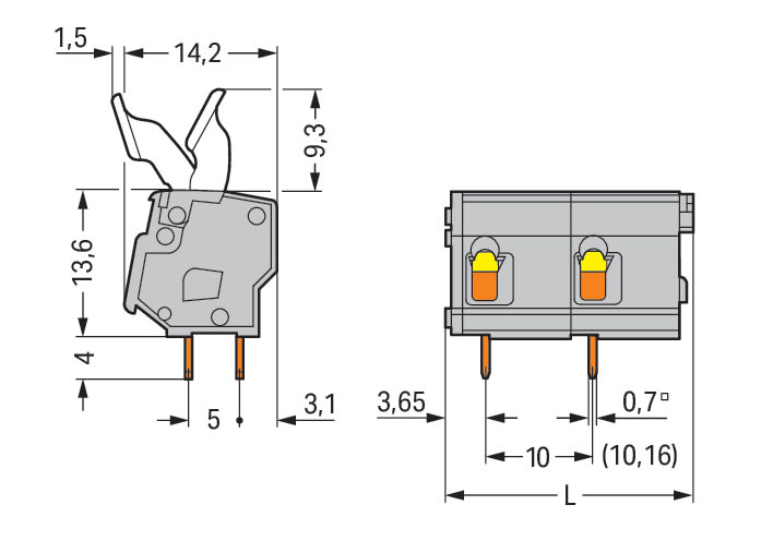 WAGO ELETTRONICA - Morsetto per circuito stampato.leve azionate a mano.2,5 mm².grigio 257-604/333-000