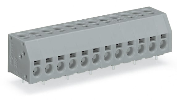 Morsetto per circuito stampato per 2 conduttori. 1,5 mm2. Passo pin 5 mm. 11 poli. PUSH WIRE®. 1,50 mm2. grigio