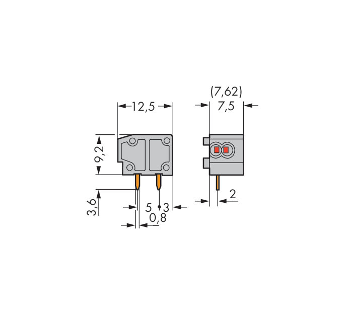 Morsetto per circuito stampato per 2 conduttori sovrapponibile. 0,75 mm2. Passo pin 7,5/7,62 mm. 1 polo. PUSH WIRE®. 0,75 mm2. grigio