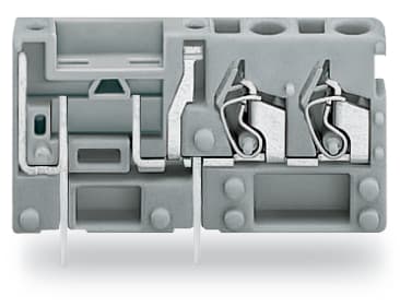 Morsetto per circuito stampato per 2 conduttori sovrapponibile. con supporto per fusibile. 2,5 mm2. Passo pin 5 mm. 1 polo. CAGE CLAMP®. 2,50 mm2. grigio