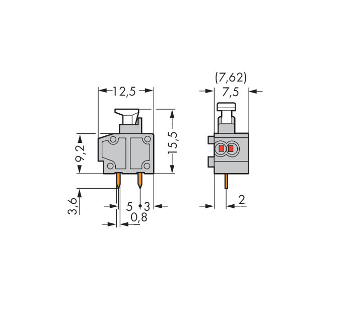 WAGO ELETTRONICA - Morsetto per circuito stampato per 2 conduttori sovrapponibile.pulsante.0,75 mm².blu