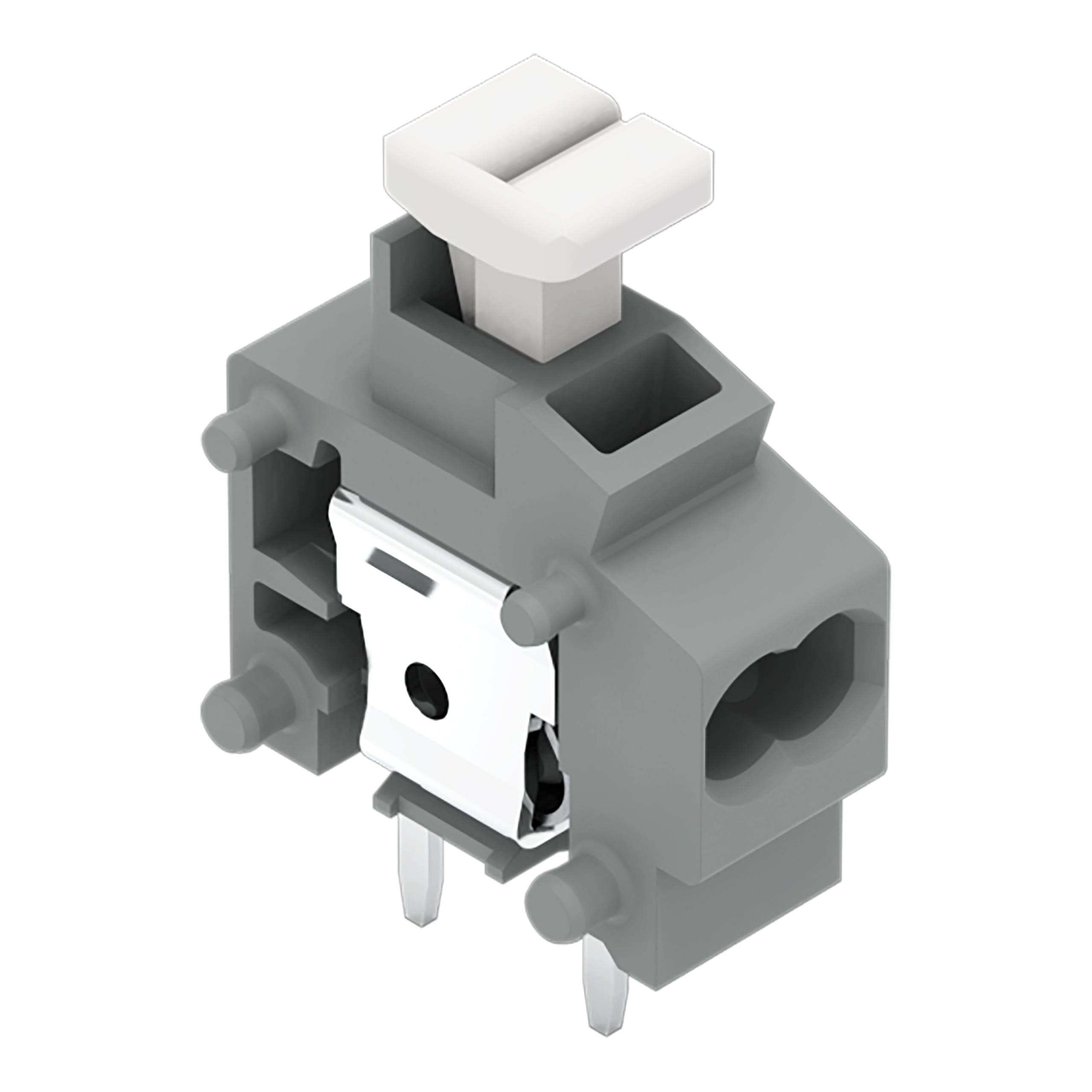 Morsetto per circuito stampato per 2 conduttori sovrapponibile. pulsante. 0,75 mm2. Passo pin 5/5,08 mm. 1 polo. PUSH WIRE®. con presa per test. 0,75 mm2. grigio