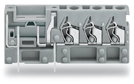Morsetto per circuito stampato per 3 conduttori sovrapponibile. con supporto per fusibile. 2,5 mm2. Passo pin 5 mm. 1 polo. CAGE CLAMP®. 2,50 mm2. grigio