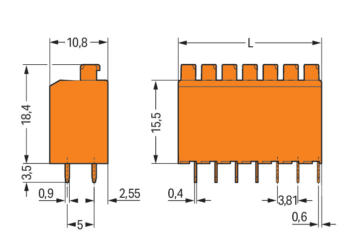 Morsetto per circuito stampato. pulsante. 1,5 mm2. Passo pin 3,81 mm. 3 poli. PUSH WIRE®. 1,50 mm2. arancione